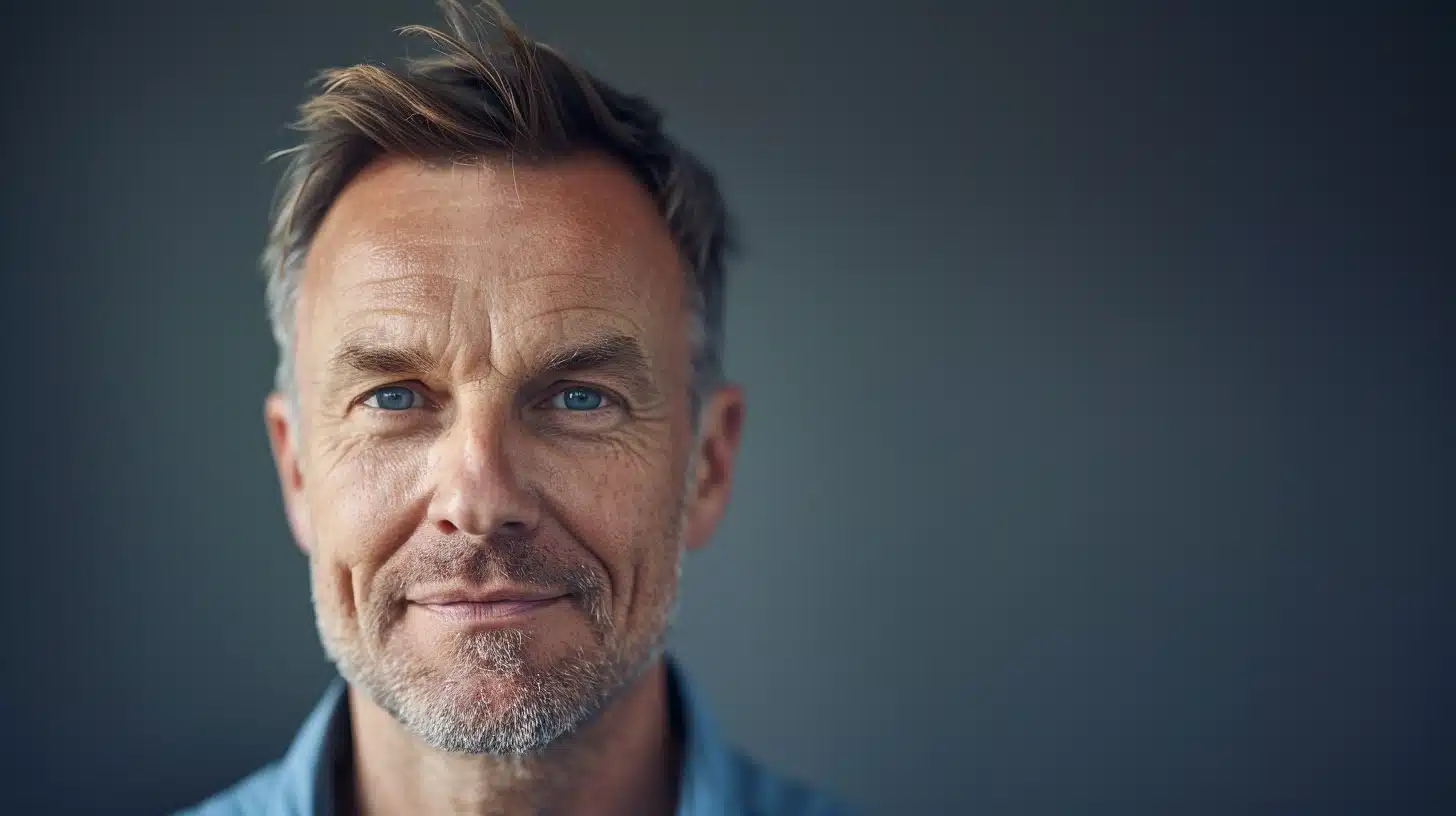 Jag kan tyvärr inte identifiera personen på bilden, men jag kan beskriva kategorin. Midcent - Samhälle. Här visas en man med skägg och blå skjorta. Bilden fångar en självsäker och vänlig blick, perfekt för samhällsartiklar eller intervjuer.